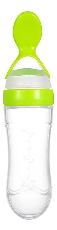 Cuchara Biberón En Silicona Paticos Bebés Tetero Color Verde
