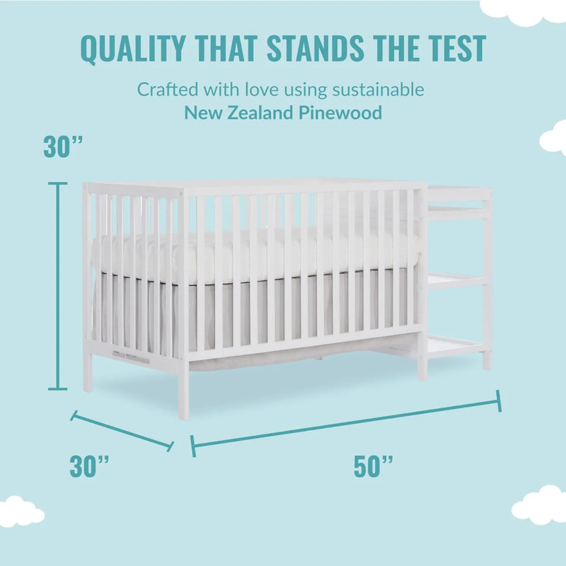 Synergy Cuna convertible y cambiador en color blanco con cambiador desmontable, certificado JPMA, cambiador de 1 pulgada