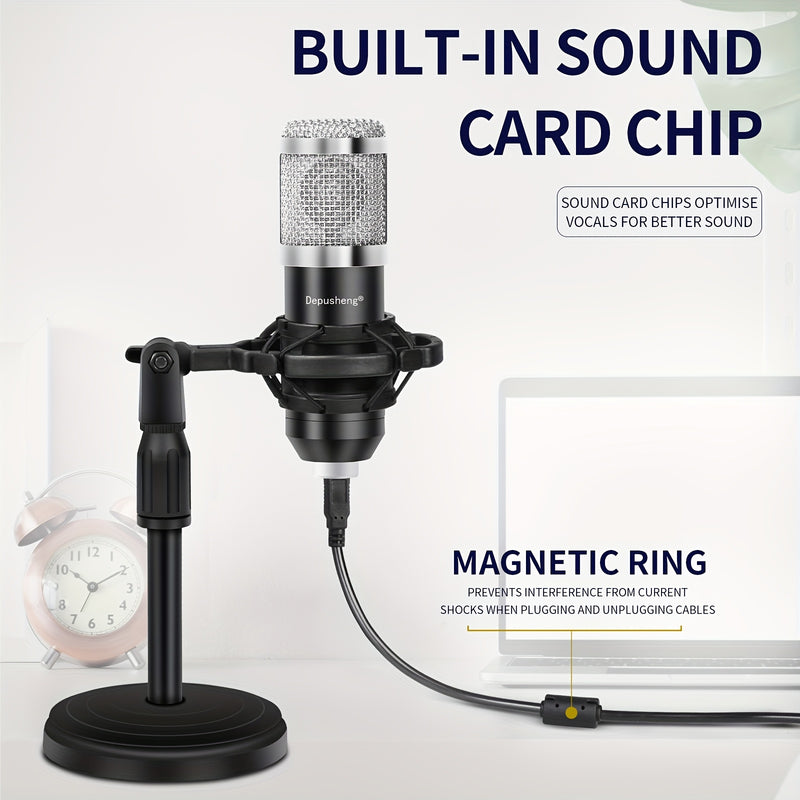 DEPUSHENG Micrófono USB Condensador para PC, Kit de Microfonía para Gaming, Podcast y Reuniones