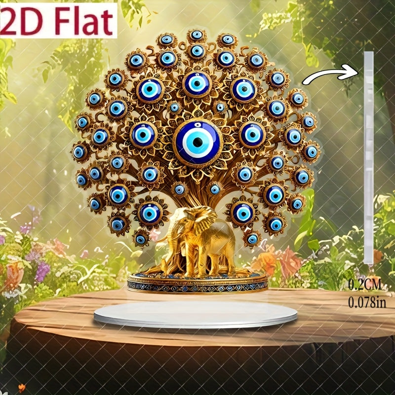 Decoración de Escritorio Estilo Bohemio en Acrílico con Ojo Turco Plano 2D - Símbolo Protector Religioso con Diseño Intrincado Azul y Dorado, Decoración para Hogar Oficina Jardín Interior/Exterior, Sin Necesidad de Batería, Adorno para Dormitorio Bohemio