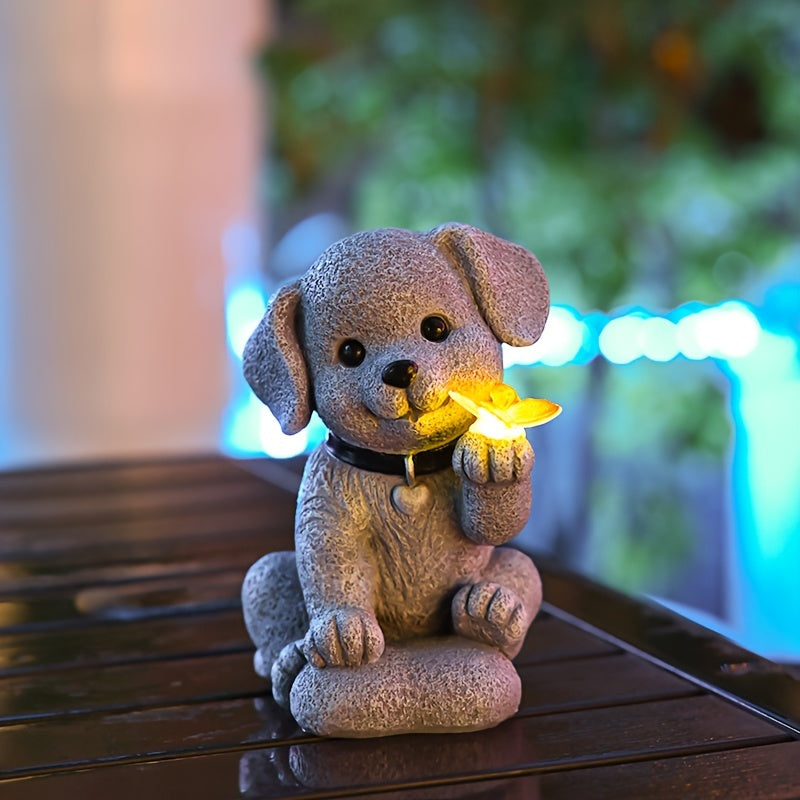Escultura de perro con energía solar, estatua decorativa independiente de resina para jardín, patio, césped, regalo único de inauguración de la casa para mujeres y mamás, decoración navideña y de Acción de Gracias para exteriores con temática de perros,