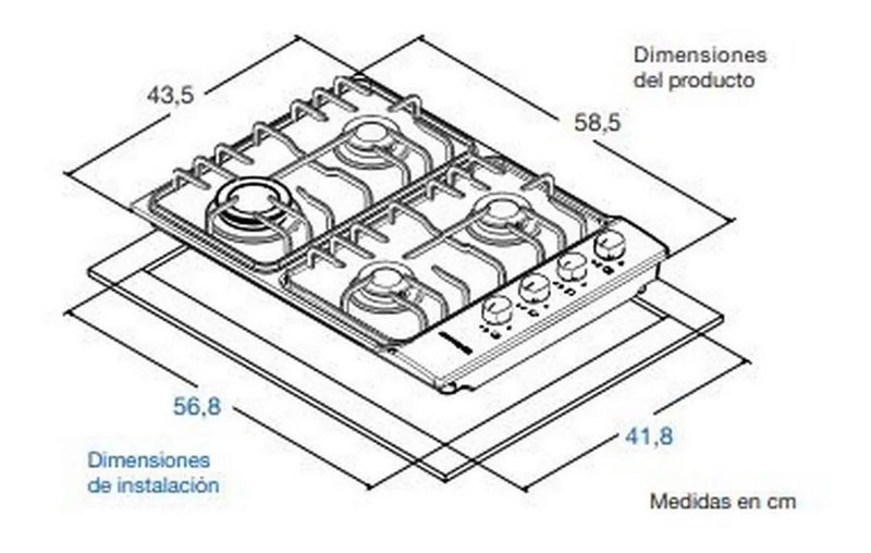 Estufa De Empotrar A Gas 4 Puestos Acero Inoxidable 58.5cm Plateado