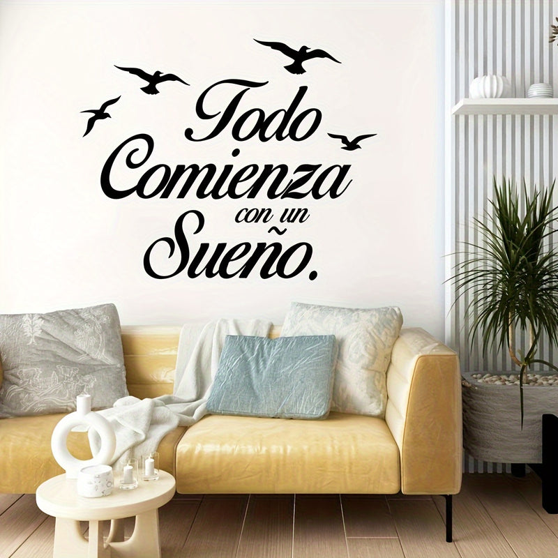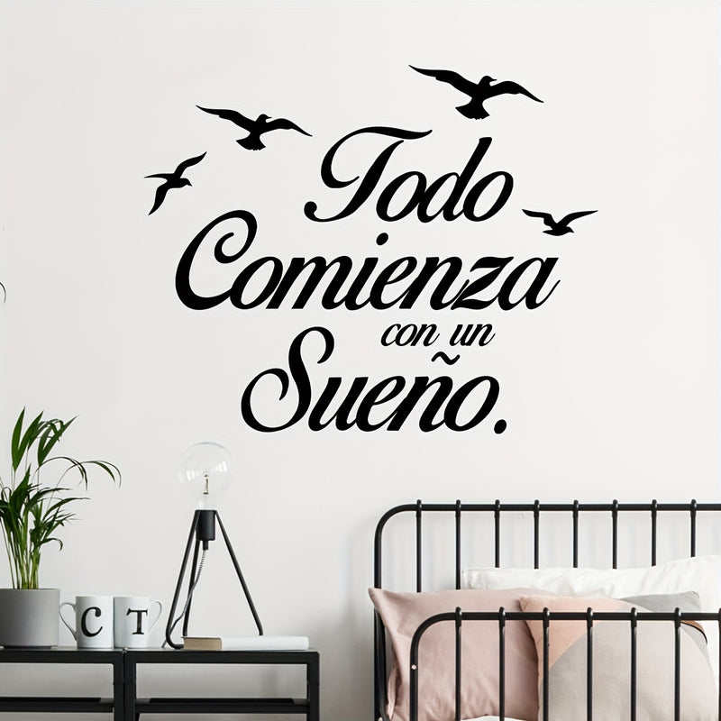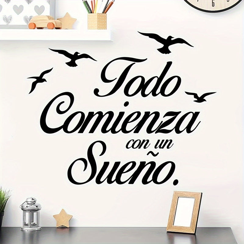 Pegatina de vinilo autoadhesiva 'Todo Comienza Con Un Sueño' - Calcomanía con frase motivadora en español para habitación, sala de estar u oficina - Estilo contemporáneo, diseño gráfico, acabado semimate, desmontable