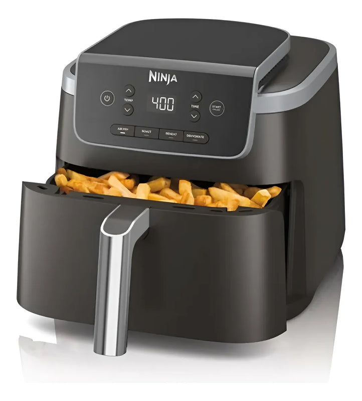 Conoce la Ninja® Air Fryer Pro, una manera rápida y fácil de obtener el crujido perfecto con hasta 400°F de calor. La Tecnología Air Crisp rodea tus alimentos favoritos con aire supercaliente para resultados calientes y crujientes. Con capacidad de 5 QT, puedes cocinar hasta 4 libras de papas fritas con poco o nada de aceite y disfrutar de tus platillos preferidos sin culpa. Con funciones para Air Fry, Roast, Reheat y Dehydrate, las opciones son infinitas. Con 4 funciones de cocción, puedes satisfacer cualquier antojo, desde snacks crujientes hasta comidas completas. Y para terminar, la limpieza es muy sencilla con una cesta y plato crisper antiadherentes.