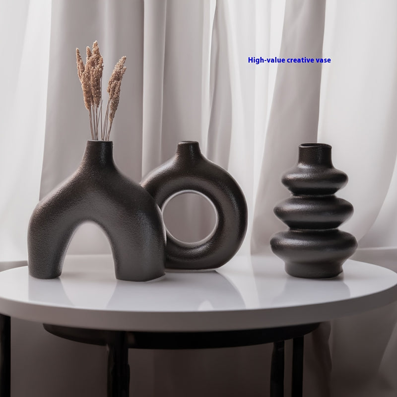 Juego de Tres Jarrones Blancos de Cerámica con Diseño Geométrico Redondo y Acabado Mate