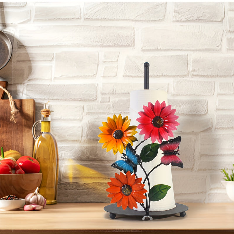 Soporte de toallas de papel con diseño de girasol, base decorativa para pañuelos con detalles de mariposas para cocina y baño - 1 unidad
