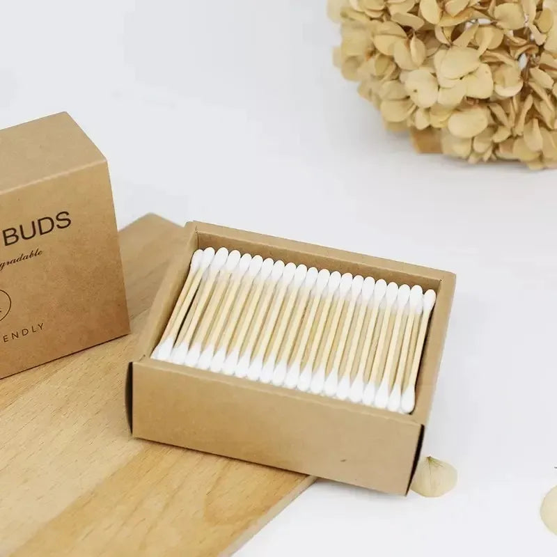 El bambú y el algodón de nuestros bastoncillos de algodón orgánico son 100% biodegradables. El bambú es un recurso en rápido crecimiento y es la solución sostenible para los bastoncillos de algodón plásticos tradicionales.