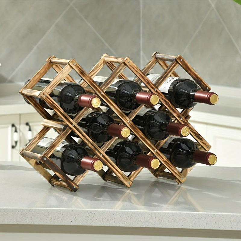 Estante de Vino de Madera Apilable - Diseño Plegable para Cocina y Comedor, Perfecto para Encimeras y Armarios