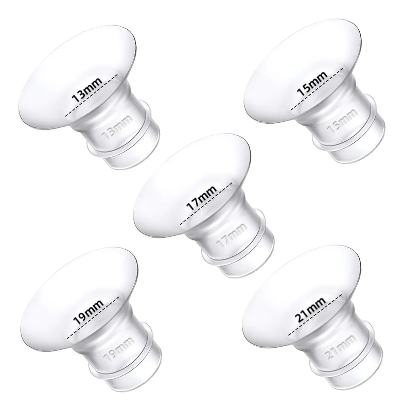 Insertos de brida de 13/15/17/19/21 in (paquete de 5) compatibles con bridas/escudos de 0.945 in de la mayoría de las bombas, inserto para accesorios de repuesto de extractor de leche, reduce el túnel de pezón de 0.945 in a otros tamaños (no para escudos / bridas de 1.063 in), reemplaza las piezas de la bomba.