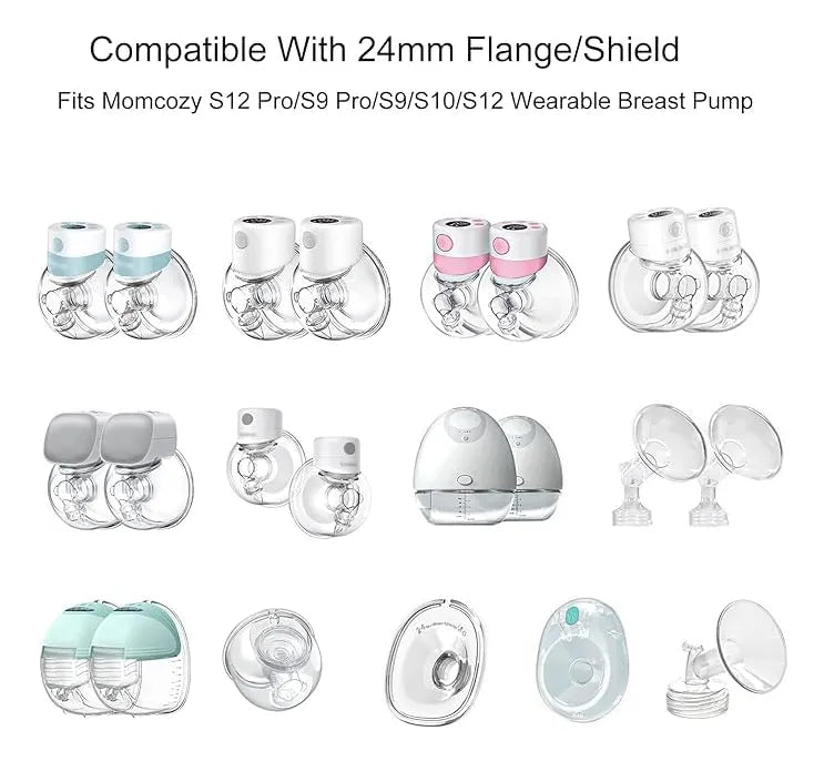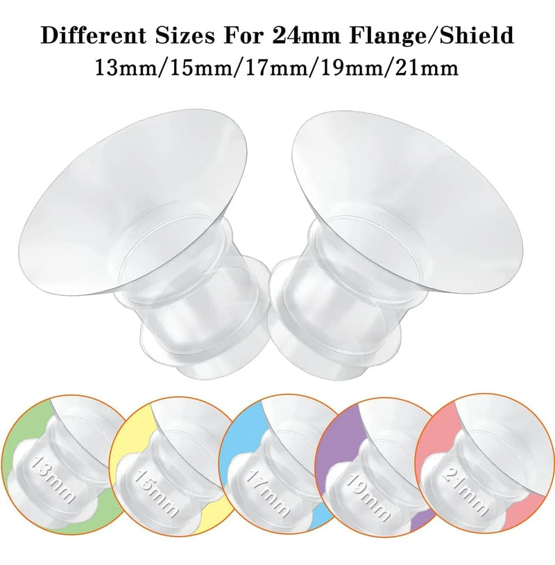 ,-Amplia aplicacion: estos accesorios para extractor de leche solo son adecuados para escudos/bridas de 0.945 in y no se pueden utilizar con otros tamanos de escudos/bridas. Usar aceite de coco o mantequilla para pezones puede reducir la friccion y hacerlos mas faciles de usar.