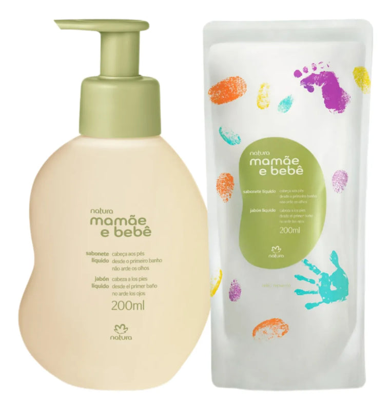 El paquete contiene: 1 Jabón Líquido 200ml + 1 Repuesto Jabón Líquido 200 ml Mamá y Natura