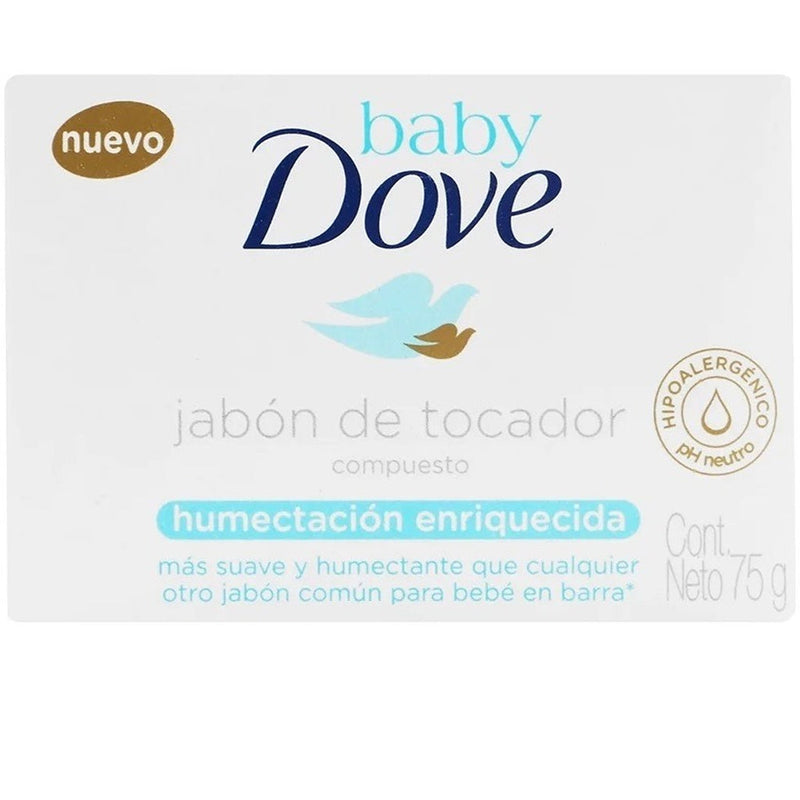 Nuestro jabón de tocador para bebés enriquecido con nuestro ¼ de crema humectante, mantiene la piel de tu pequeño muy suave al tacto y le ayuda a prevenir la resequedad que cualquier otro jabón común en barra para bebé podría causar. Probado por especialistas (oftalmólogo, dermatólogo y pediatra), el jabón en barra Baby Dove es hipoalergénico, tiene pH neutro (por lo que no irritará la suave piel de tu bebé), y una delicada fragancia.