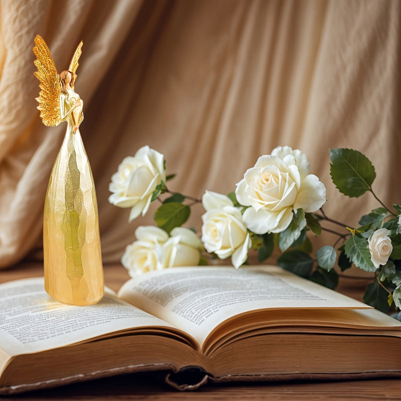 Escultura de ángel nórdico artesanal con alas doradas - Figurita de resina elegante para decoración interior/exterior, regalo perfecto para cumpleaños, Navidad, Acción de Gracias para padres y amigos, decoración de ángeles.