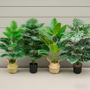 Juego de 4 piezas, incluye combinación de plantas artificiales de hojas grandes. Ideal para exteriores—árbol decorativo tropical de hoja ancha, macetas para interior y exterior todo el año, bodas, hoteles, jardines, patios estilo nórdico, decoraciones pa
