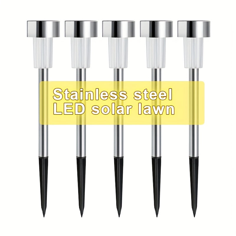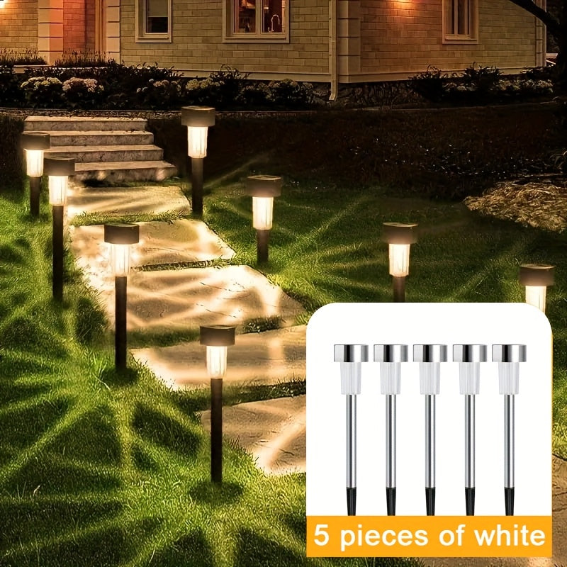 Juego de 5/10/24 luces solares LED para césped, luz solar exterior de acero inoxidable, sin tarifa eléctrica, no requiere cableado. Adecuadas para decorar patios, céspedes, caminos, terrazas, pasillos, jardines y se encienden automáticamente al anochecer