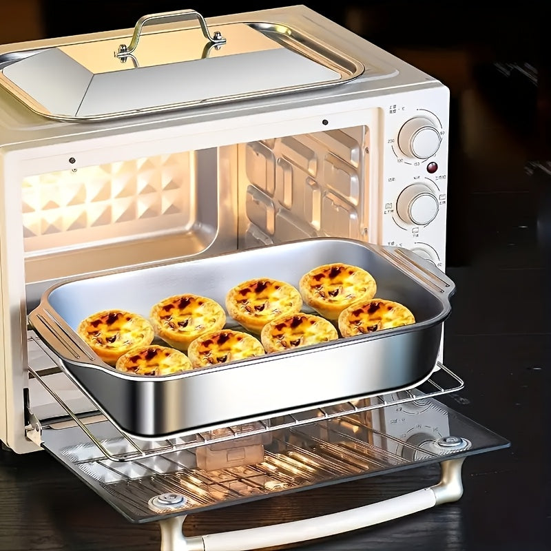 Juego de sartenes para asar hechas de acero inoxidable con tapas - Antiadherentes, robustas, plato de parrilla con dos asas, bandeja de horno versátil para postres, panes y mariscos - Perfecta para barbacoas, bufets y ocasiones festivas