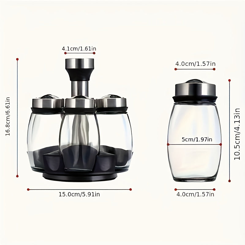 Juego de Tarros de Vidrio para Especias con Base Giratoria - 6 Tarros y Plato Rotativo para Sal, Pimienta, Azúcar - Organizador de Encimera de Cocina