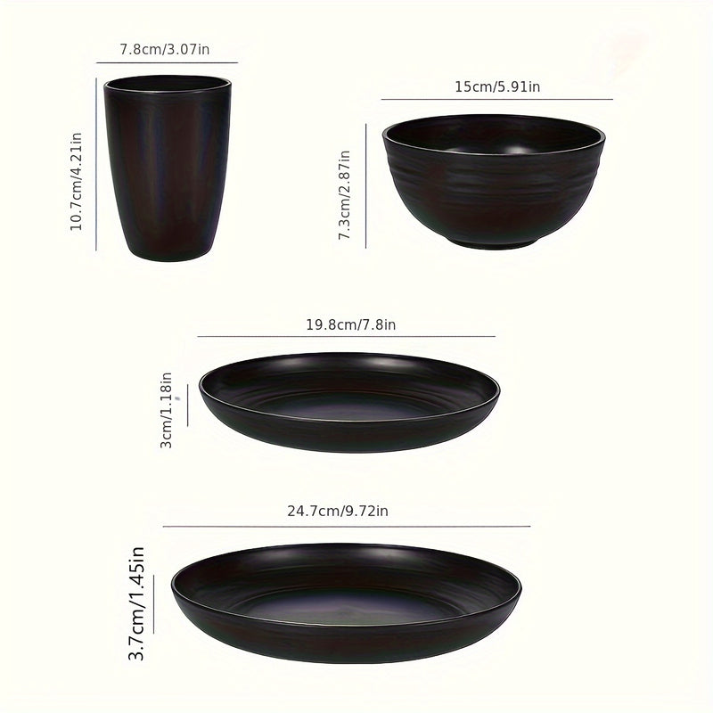 Juego de vajilla de plástico de 16 piezas - Incluye platos, tazones, tazas y platillos - Ideal para camping, picnics, reuniones familiares, autocaravanas, fiestas y residencias universitarias