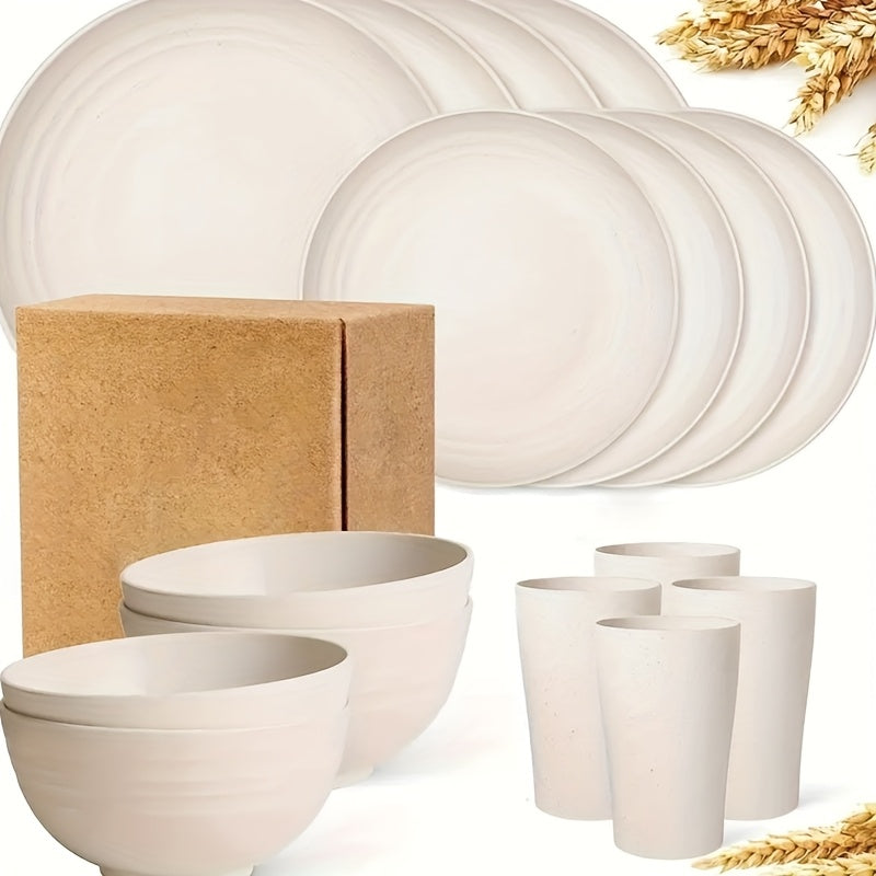 Juego de vajilla premium de paja de trigo, 16 piezas irrompibles, apto para microondas y lavavajillas, set negro con 8 platos, 4 tazones y 4 tazas