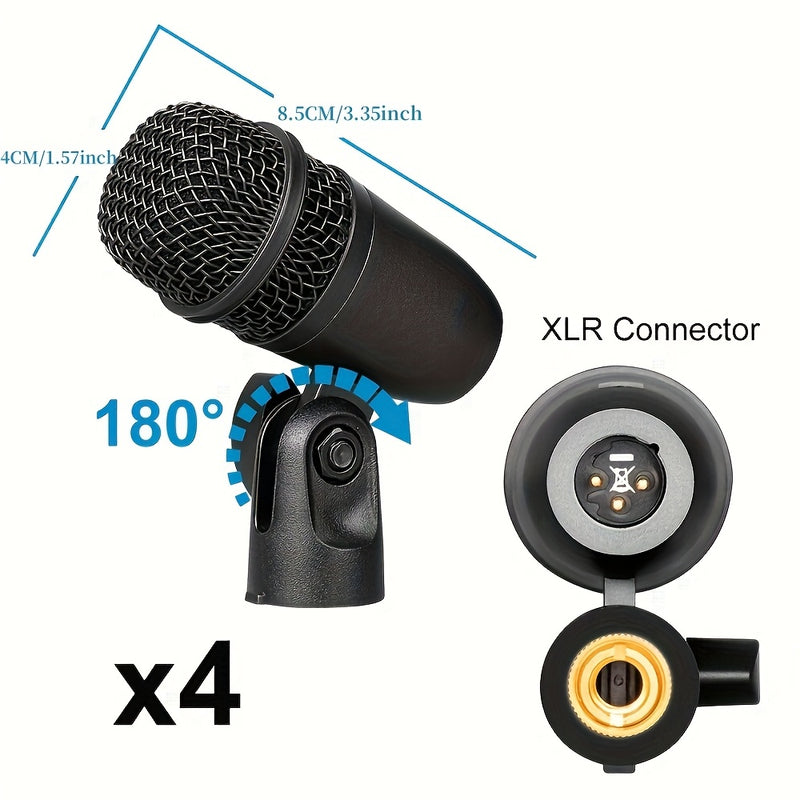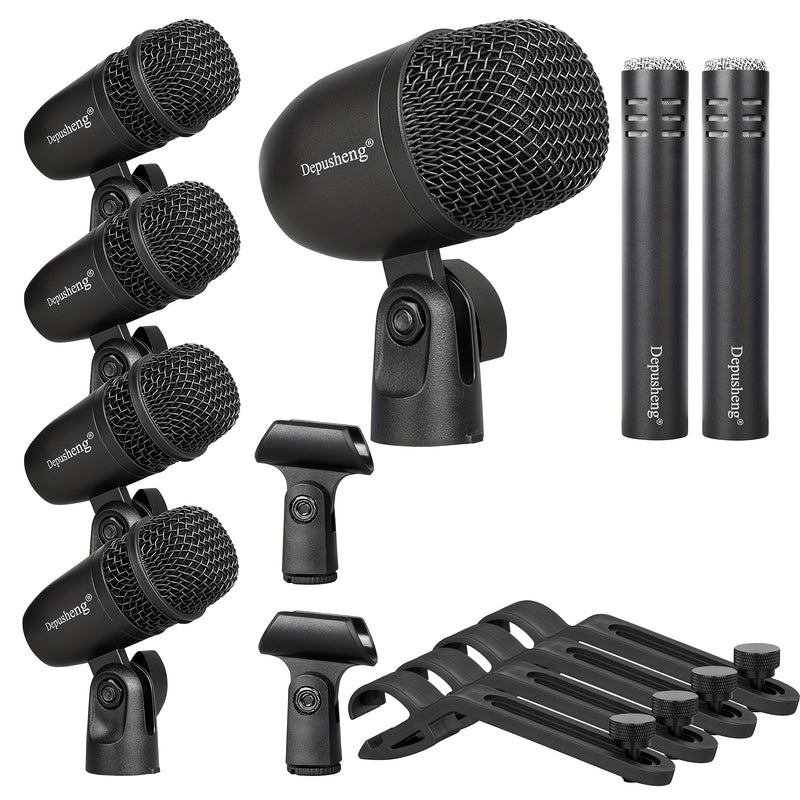 Kit de Micrófono Dinámico con Cable DEPUSHENG 7pcs - para Bajo/Tom/Snare/Hi-hat Cymbals, Soportes y Clips Roscados