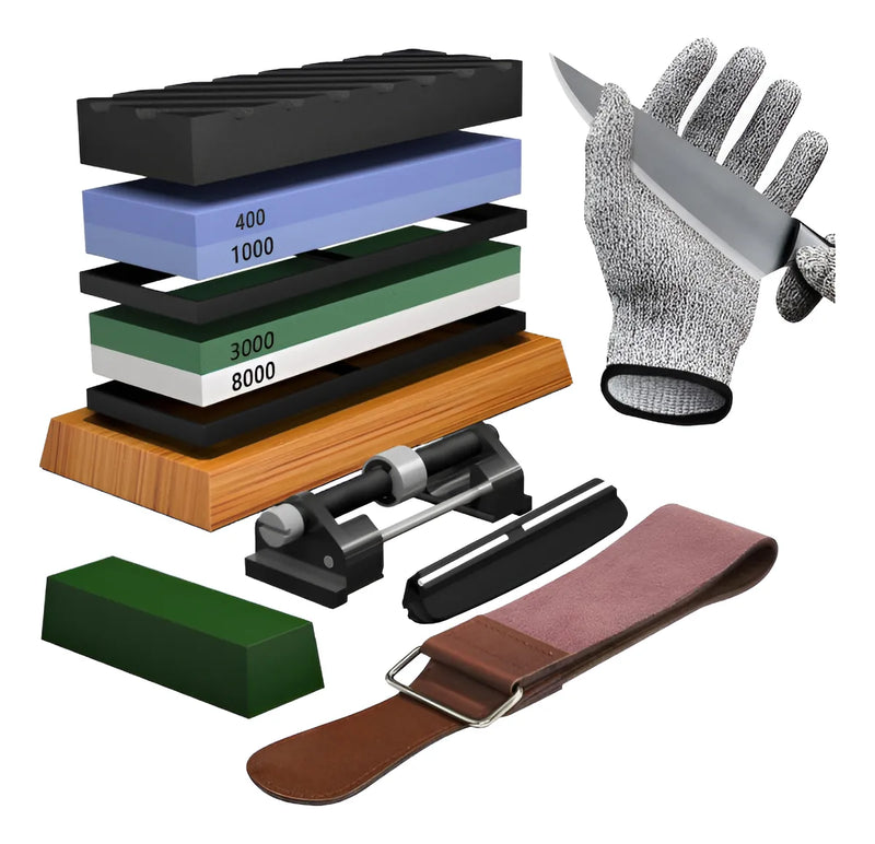 Kit de piedra de afilar , juego de piedra de afilar de piedra de afilar japonesa profesional, grano de 4 lados premium 4001000 30008000 piedra de agua, piedra de aplanamiento, guía de ángulo, correa de cuero, guantes anticorte