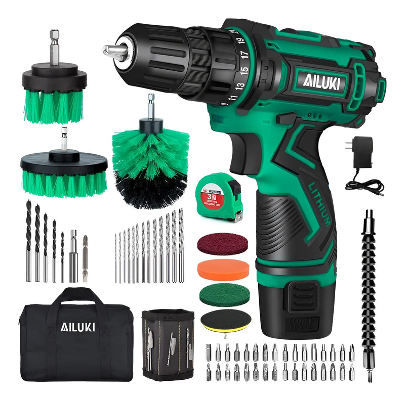 Embrague 21+1 y LED integrado: con modo de trabajo 2 en 1: conducción y perforación y 21 ajustes de embrague ajustables que te hacen manejar fácilmente una variedad de aplicaciones con precisión. Ya sea reconstrucción del hogar, renovación, mantenimiento del jardín o mantenimiento de garaje, este juego te dará una manera fácil de lograrlo. La luz led fue activada por el gatillo que ilumina cualquier espacio de trabajo oscuro.
