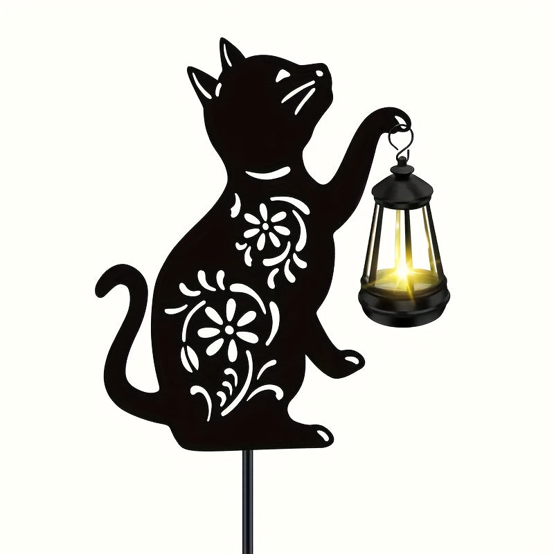 Lámpara de gato solar con patrones florales - Luz exterior de jardín de metal, batería de níquel, ideal para decoración de patio, regalo perfecto para el Día de la Madre (1/2PAQUETE), iluminación eficiente energéticamente | Lámpara decorativa | Construcc