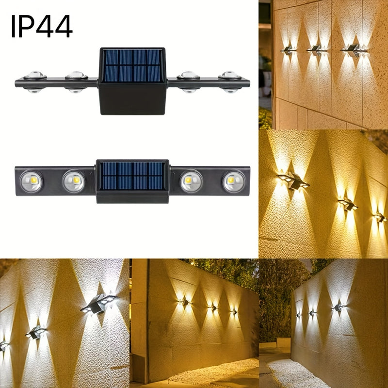 Lámpara de Pared Solar Montada con Espejo Convexo, Iluminación Externa LED para Paisajes Decorativos, Lámpara Solar Exterior para Patio, Jardín, Valla y Terraza, Decoración Festiva