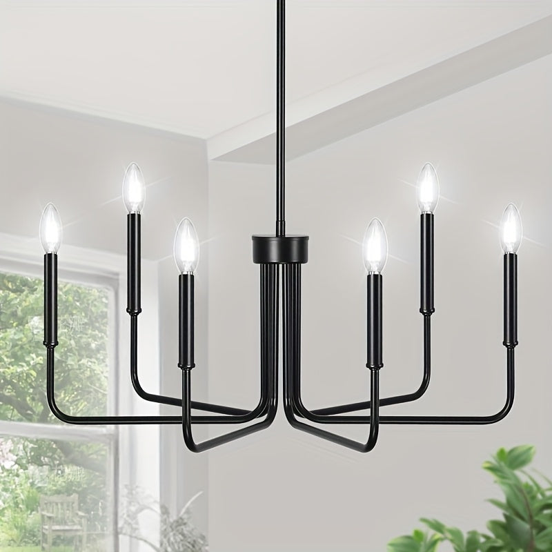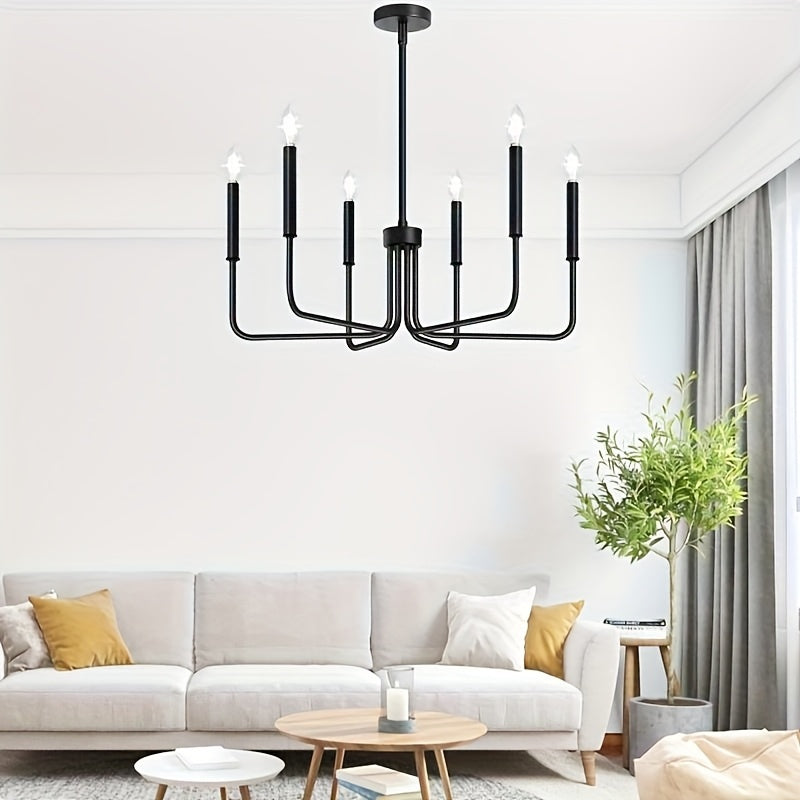 Lámpara de Techo Metálica Negra de 6 Luces Estilo Industrial Americano Sencillo y Renovado, Adecuada para Sala de Estar, Comedor, Dormitorio, Isla de Cocina, Luz Colgante Decorativa, Instalación Fácil, Estilo Versátil, Compatible con Cabeza de Lámpara E1