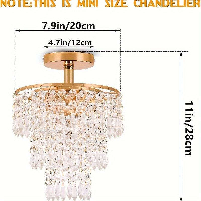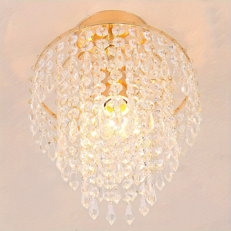 Lámpara de Techo Moderna Mini Cristal - Diseño de Gota de Lluvia de 3 Niveles, Montaje Empotrado con Acabado Dorado para Dormitorio de Niñas, Sala de Estar, Comedor - Incluye Bombilla
