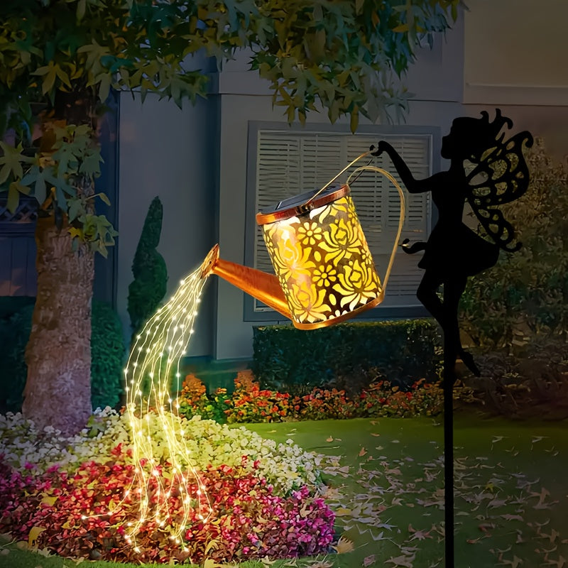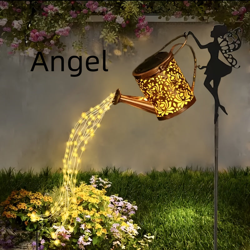 Linterna de sol para exteriores con forma de tetera y luces de cuerda, lámpara decorativa colgante en forma de ángel solar, lámpara de cascada solar, adecuada para caminos de jardín del patio, terraza del hogar y regalos festivos