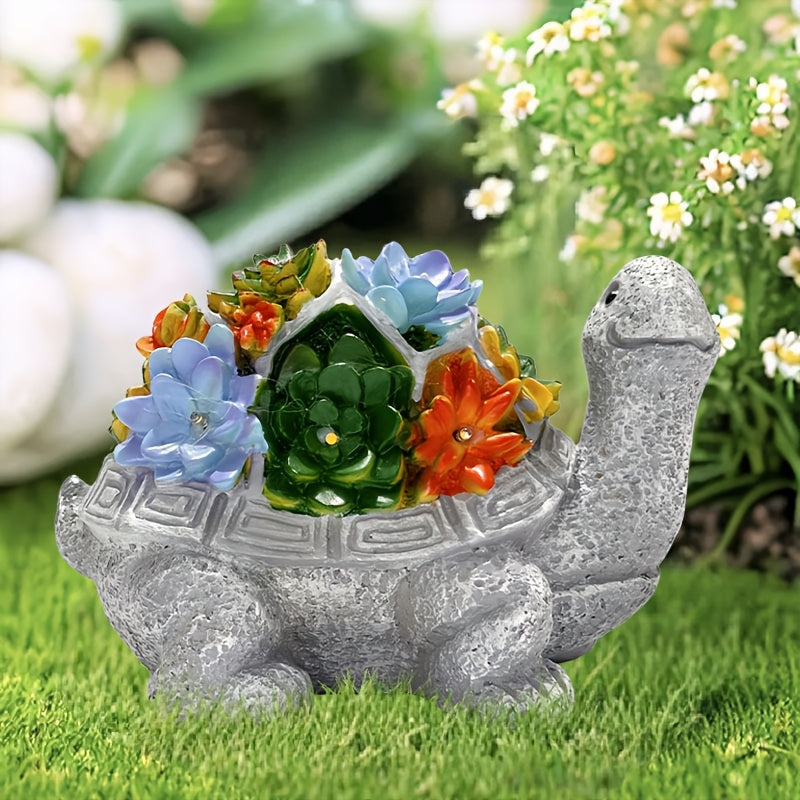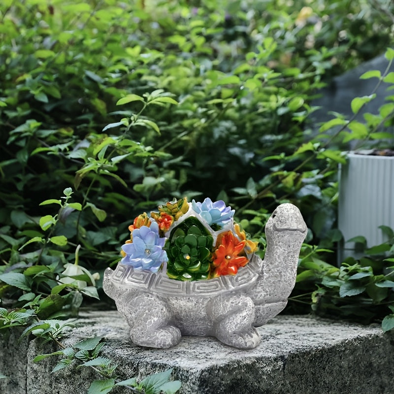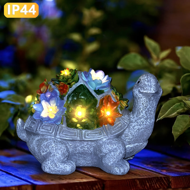 Linterna solar, estatua de tortuga con flores suculentas para exteriores, artesanías de resina, adecuada para patio, jardín, césped, escalones, regalo del Día de la Madre, Halloween, Navidad
