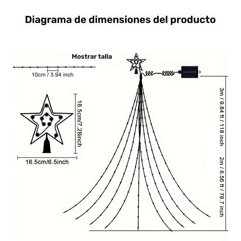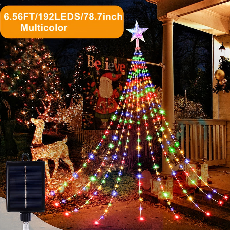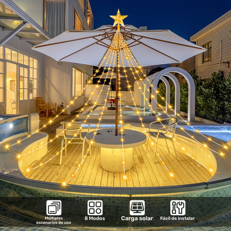 Luces de cadena con cascada de estrellas, 1 unidad, energía solar, 8 modos, ≤36V, plástico PPSU, batería de litio, para jardín, ventana, cortina, patio, árbol de Navidad, fiesta, hogar, boda, decoración navideña