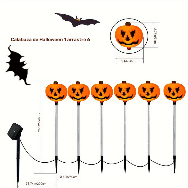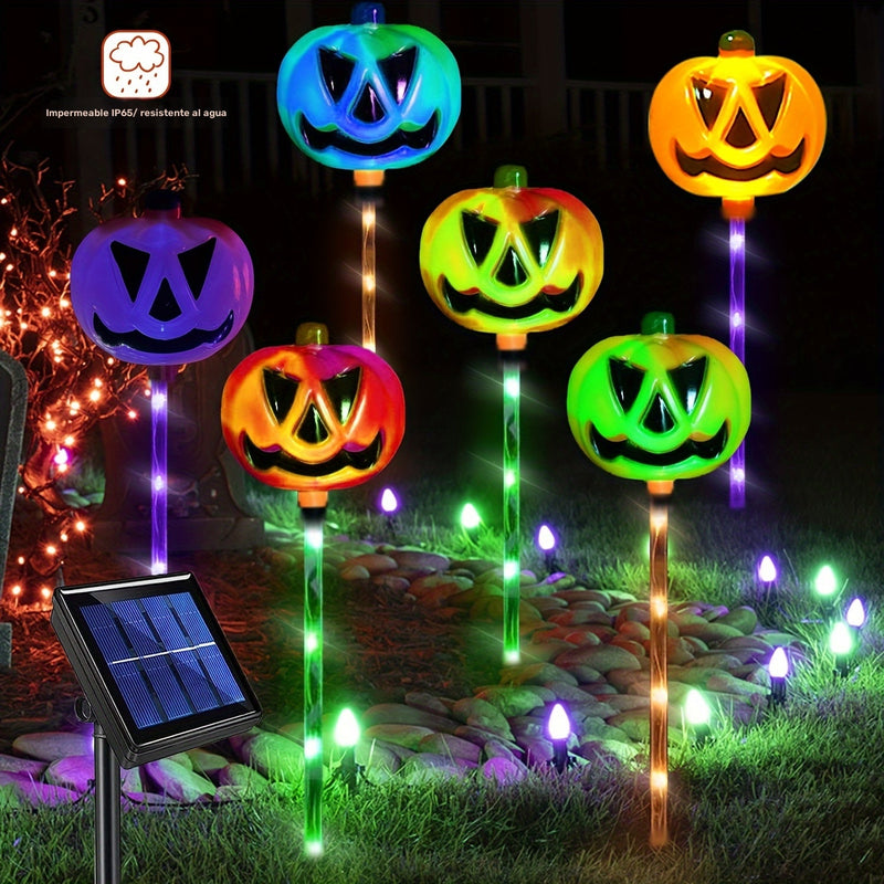 Luces de Calabaza Cambiantes con Energía Solar, Juego de 6 Calabazas Espeluznantes Impermeables IP65 para Halloween, Navidad, Decoración de Patio, Jardín y Caminos, Adornos de Cementerio