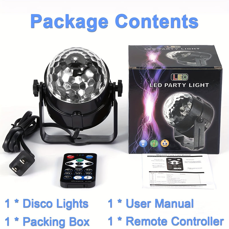 Luces de DJ de bola de discoteca, luces de fiesta activadas por sonido RGB Lámpara estroboscópica giratoria de escenario con control remoto inalámbrico para graduación, cumpleaños de niños, boda, zumba, decoraciones de verano, bar
