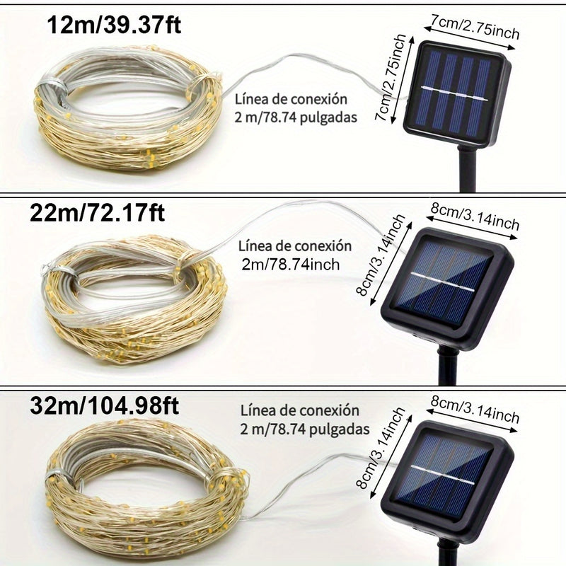 Luces de Hadas LED Solares, 32.0 metros 300LEDs Impermeables para Exteriores, Guirnalda de Luces para Jardín, Árbol de Navidad, Césped, Decoración de Casa - Alimentadas por Energía Solar con Control de Sensor de Luz