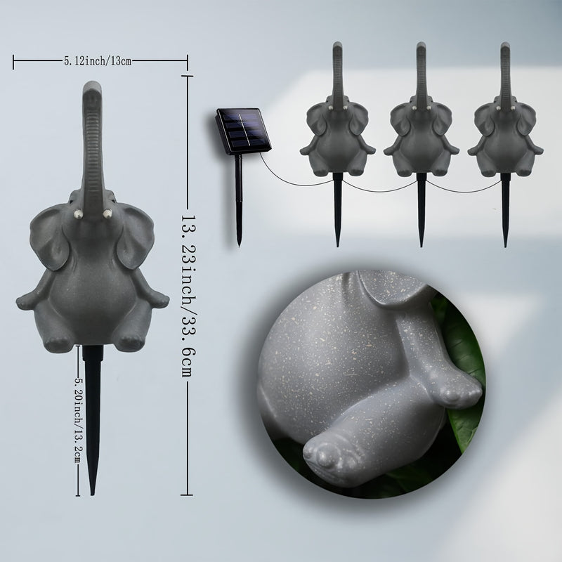 Luz solar para estatua de elefante al aire libre, juego de 3 piezas, luz solar para patio mejorada, decorativa y resistente al agua, para jardín, césped, elefante, decoración de verano, regalo del Día de la Madre.