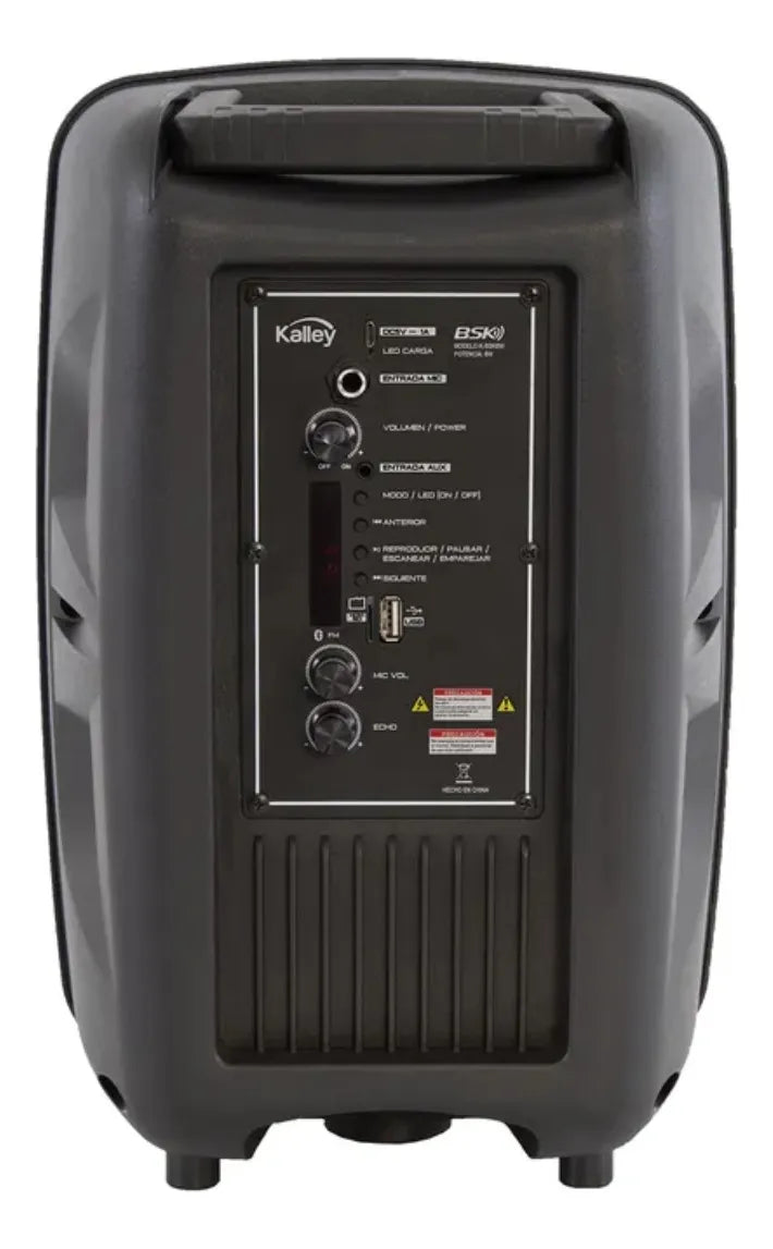Parlante Kalley K-BSK8W de 8W de potencia, ideal para ambientar reuniones. Cuenta con un punto de agarre en la parte superior para facilitar su transporte. Incluye entrada de micrófono para karaoke, así como entradas USB, Micro SD, Bluetooth y auxiliar, además de radio. Posee luces LED de colores para animar el ambiente.
