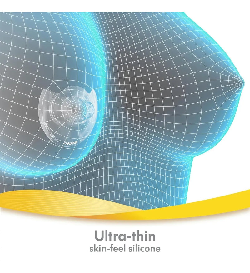 DISEÑO INNOVADOR PARA más contacto: Hecho de silicona 100% ultrafina y suave, los escudos de pezón de contacto de Medela cuentan con un diseño único con un área recortada que fomenta el máximo contacto con la piel entre usted y su bebé.
