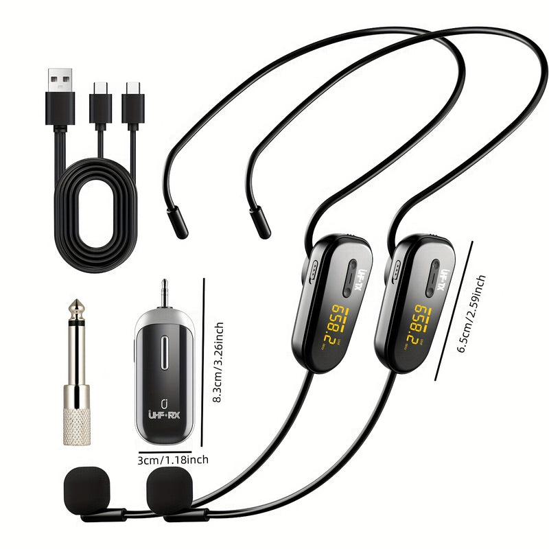 Microfono sin varillas JYX U-210 Más Vendido para 2 Personas con Amplificador de Voz, Adecuado para Actuaciones en Escenario, Enseñanza, Entrenamiento, Yoga, Discursos, Karaoke y Charlas, Carga USB