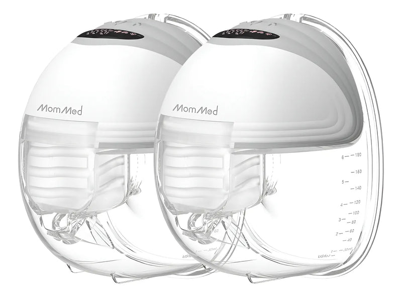 MomMed Extractor de leche portatil (modelo S21) - Extractor de leche electrico doble manos libres, diseno a prueba de fugas, 3 modos (estimulacion, expresion, automatico) y 12 niveles de vacio, portatil y silencioso, gris, paquete de 2