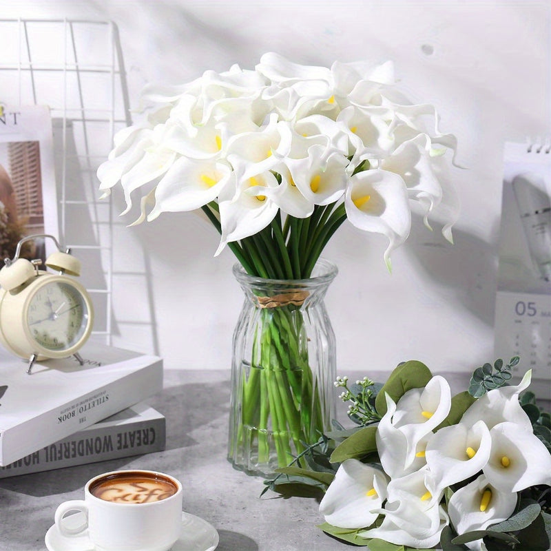 20 piezas de ramo de calas artificiales - Flores blancas de plástico realistas para bodas, Día de San Valentín, Día de la Madre, Semana Santa y decoración del hogar, accesorios para ramos