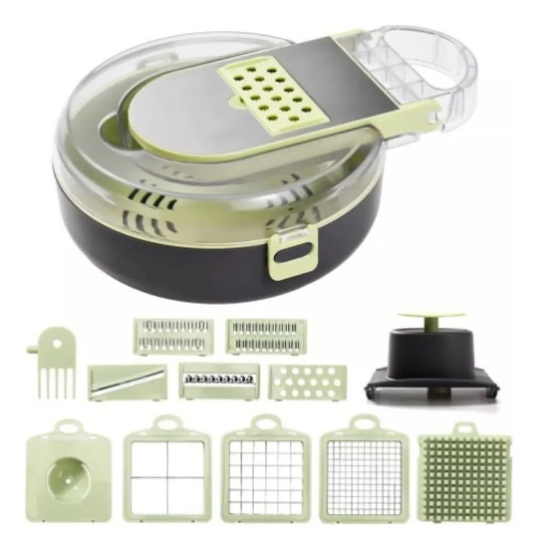 Picador Verduras Rallador Multifuncional Mandolina 13 Piezas Verde Claro