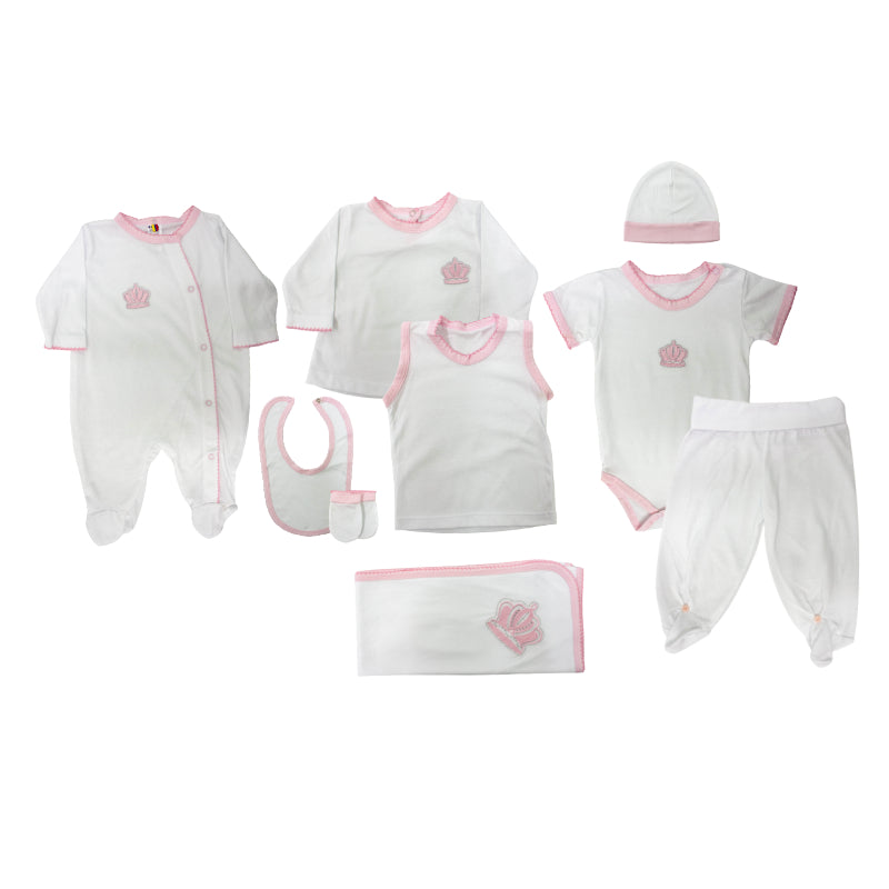 Primer día 9 piezas con bordados y sesgo de colores, ideal para los primeros días de tu bebé.