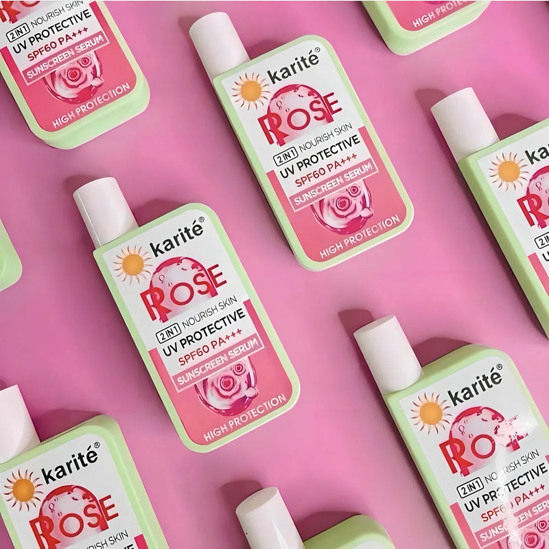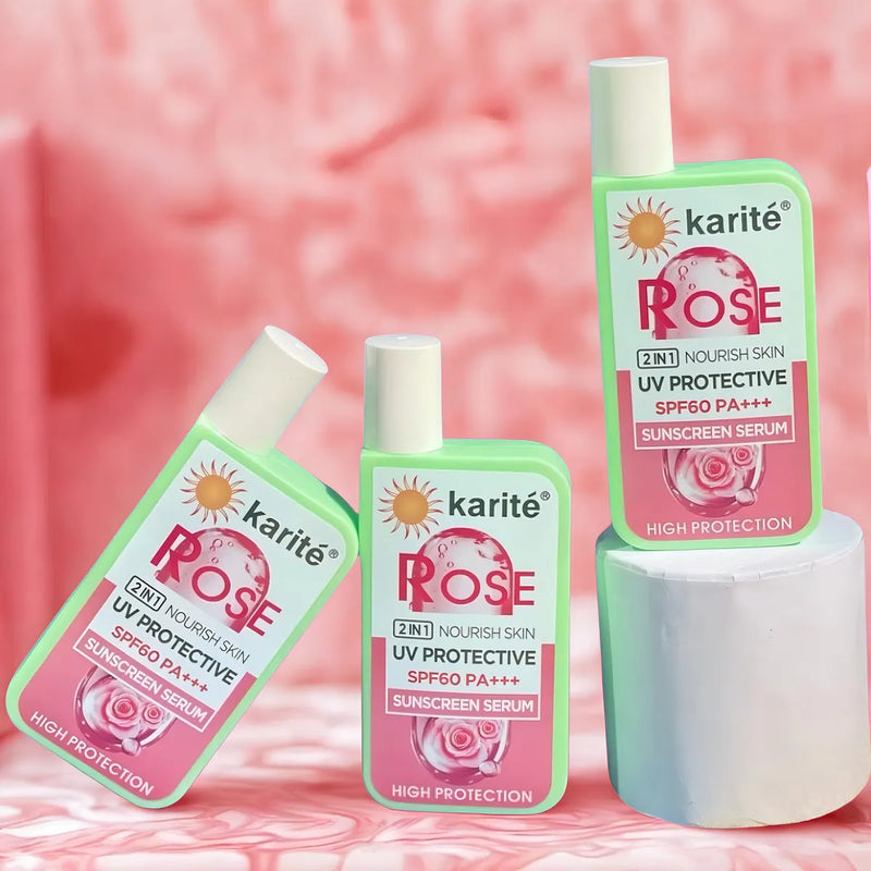 Protege tu piel con el Protector Solar Karité SPF60, enriquecido con extracto de rosas para una hidratación profunda y un acabado ligero.