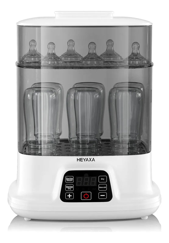 HEYAXA Calentador y secadora de biberones, vapor electrico para biberones avanzado, seguro y confiable, ajuste universal para todos los articulos de bebe, bomba de leche para biberones, pantalla tactil LED, apagado automatico