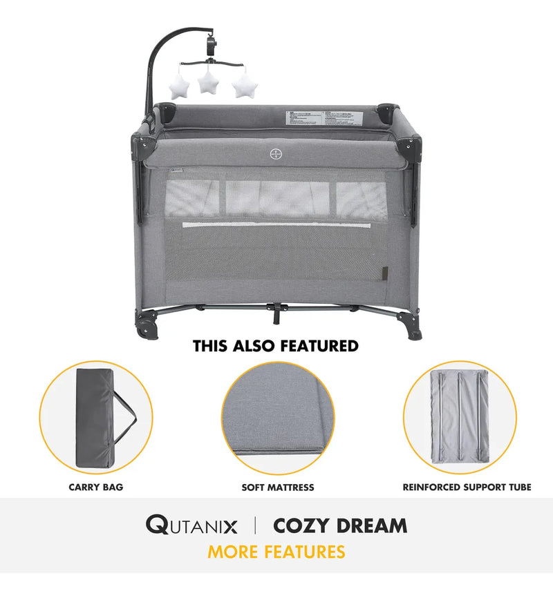 ,-Portatil y facil de plegar: disenado para familias en movimiento, el moises Qutanix aumenta la portabilidad y comodidad. El mecanismo de plegado facil transforma este paquete 2 en 1 y juega en una solucion ideal para viajes o almacenamiento. La construccion ligera pero resistente, junto con caracteristicas como el moises desmontable, hace que el moises de viaje sea el companero perfecto para el estilo de vida activo de tu familia, asegurando que tu bebe se sienta seguro y comodo dondequiera que te lleve tu viaje.