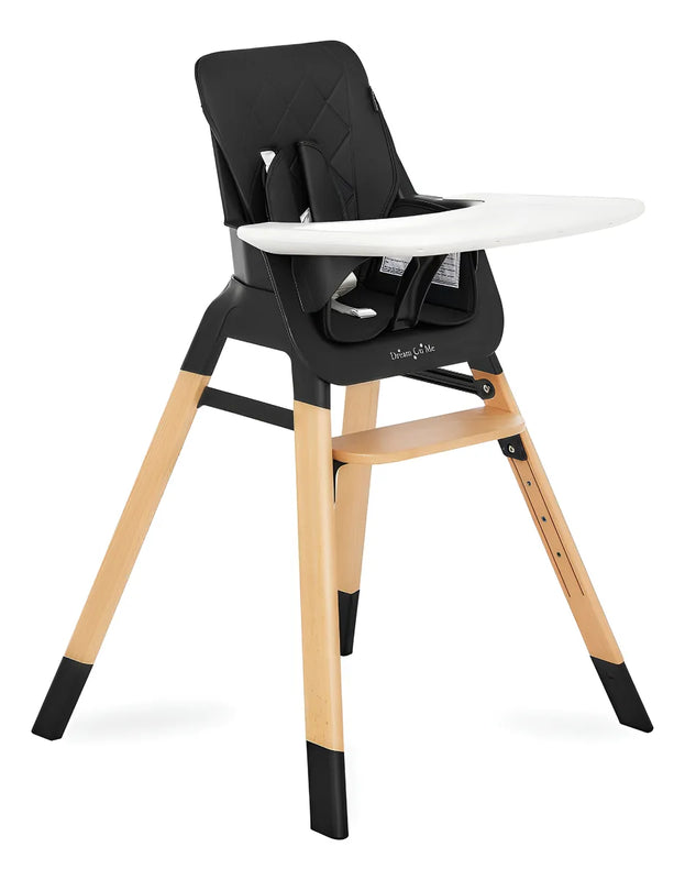 Nibble Silla alta compacta de madera en color negro Peso ligero Portátil Funda de asiento extraíble I Bandeja ajustable I Bebé y niño pequeño