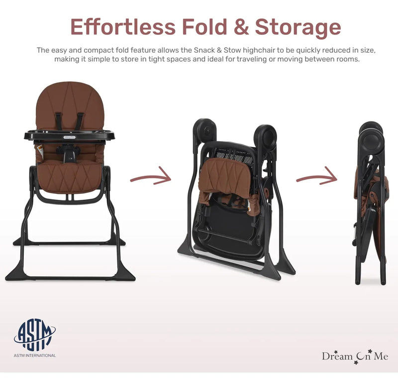 Plegado sencillo: fácil de almacenar o transportar cuando no está en uso, la silla alta Snack Stow cuenta con un plegado fácil y compacto.