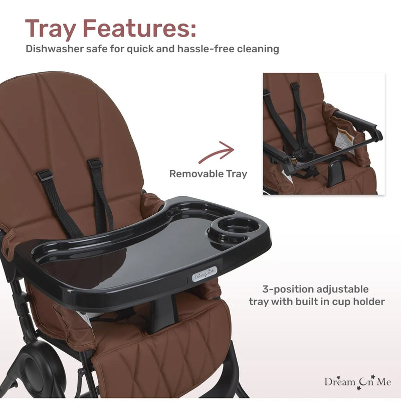 Silla alta para bebé Snack and Stow en coñac, fácil de plegar y almacenar, silla alta de viaje, bandeja extraíble y ajustable de tres posiciones silla alta portátil